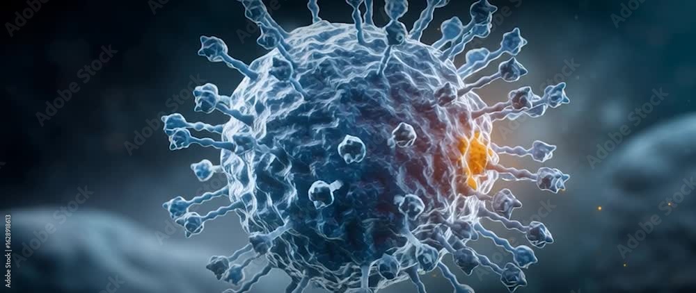 The watermark will not be included on Wall mural.: Anamorphic video virus particle being manipulated by microscopic tools - suggesting themes of scienti