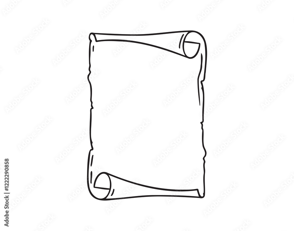The watermark will not be included on Wall mural.: Ancient empty scroll doodle hand drawn, ancient medieval paper outline icon - outline vector paper sc