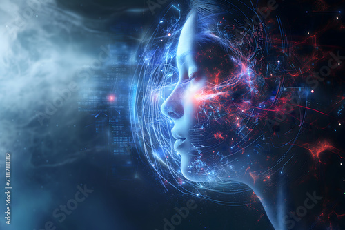 Wall mural android head on abstract cybernetic data background - Wall murals Wall mural android head on abstract cybernetic data background - Wall murals