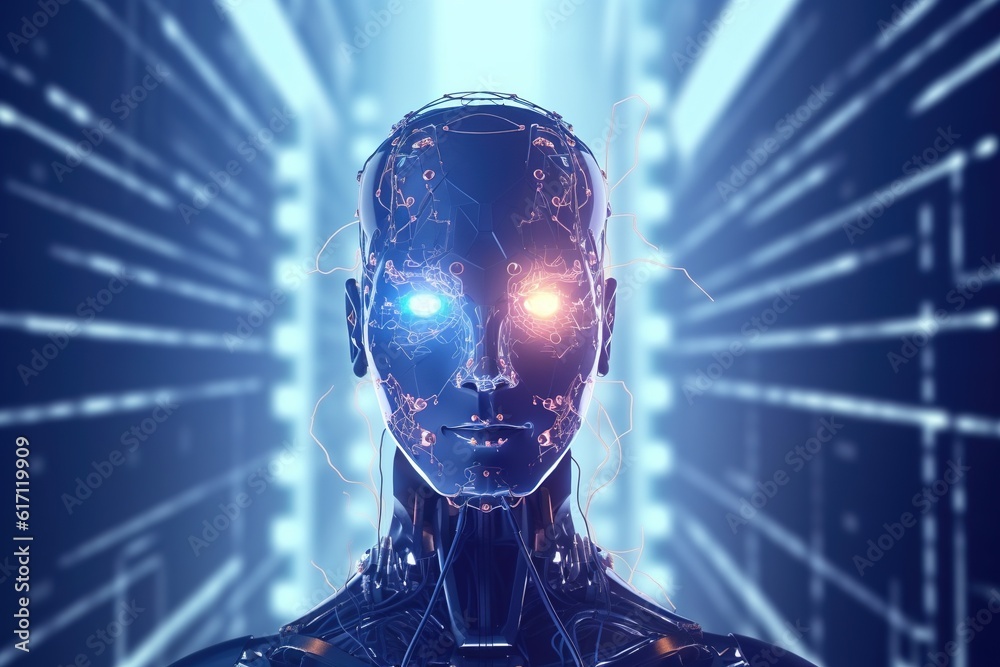 The watermark will not be included on Wall mural.: Android robot background - future artificial intelligence robot - generative ai