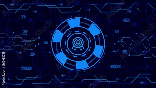 Wall mural : Animated hud interface element with a quality icon in the center of a chip on a dark background abst