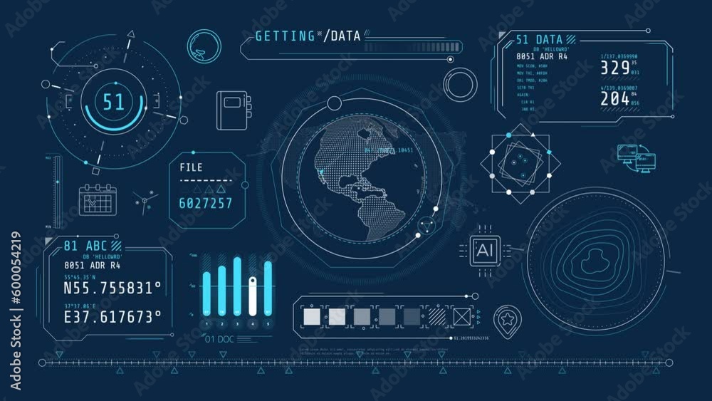 Wall mural animated infographics on the theme of geolocation and data exchange. - Wall murals Wall mural animated infographics on the theme of geolocation and data exchange. - Wall murals