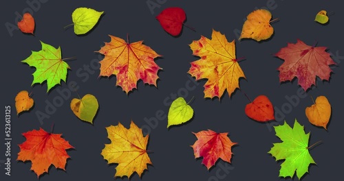 Wall mural : Animated pattern background of rotating dry autumn leaves with shadow, happy thanksgiving background