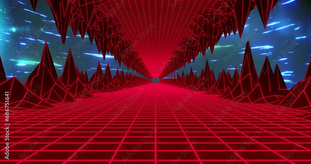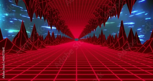 The watermark will not be included on Wall mural.: Animation of 3d model of grid pattern on landscape over dots moving in circular motion