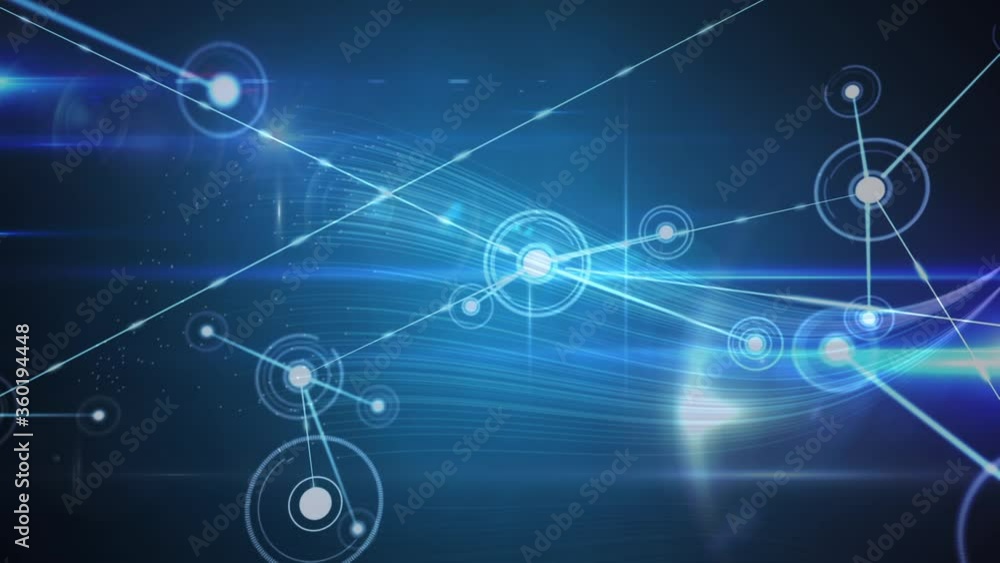 Wall mural : Animation of a growing network of connections with nodes on a black background