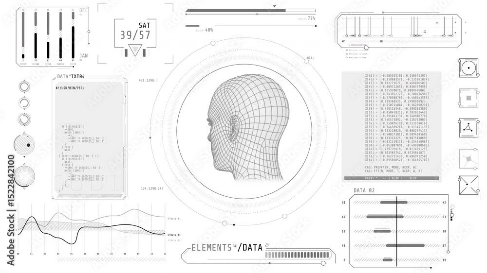 Wall mural animation of a high-tech interface with recognition data processing - Wall murals Wall mural animation of a high-tech interface with recognition data processing - Wall murals