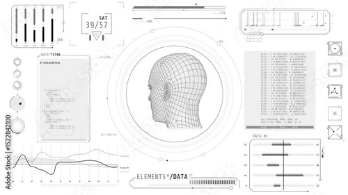The watermark will not be included on Wall mural.: Animation of a high-tech interface with recognition data processing