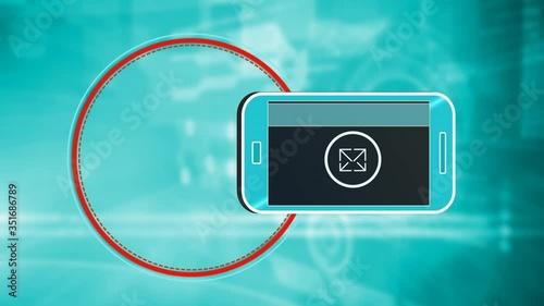 Wall mural : Animation of a smartphone showing network icons with a red circle on blue background