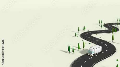 Wall mural : Animation of a white truck running around a curve - it runs forever without interruption -