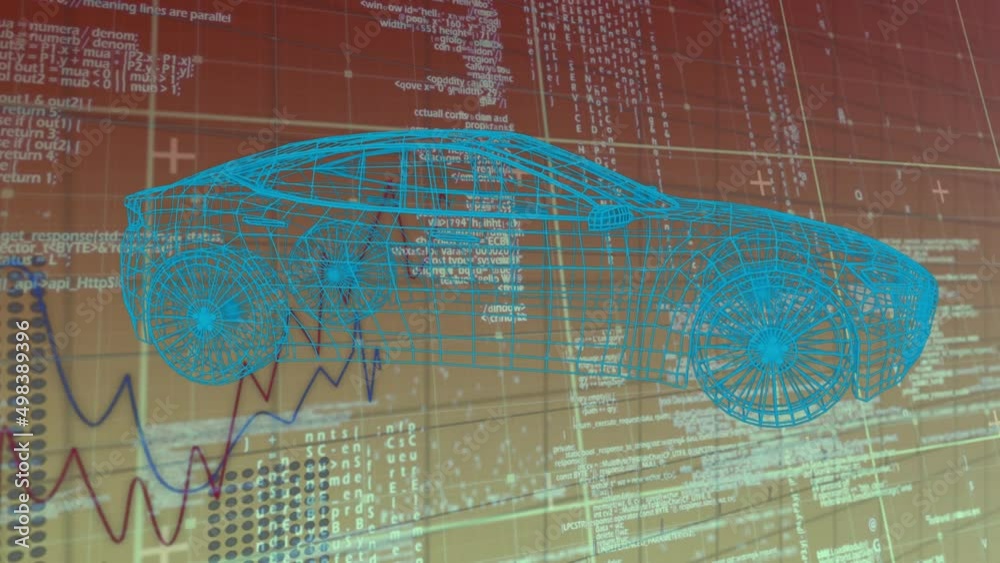 Wall mural animation of car project rotating over data processing in yellow and brown space - Wall murals Wall mural animation of car project rotating over data processing in yellow and brown space - Wall murals