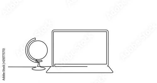 Wall mural animation of continuous line drawing of globe laptop computer and pencils - Wall murals Wall mural animation of continuous line drawing of globe laptop computer and pencils - Wall murals