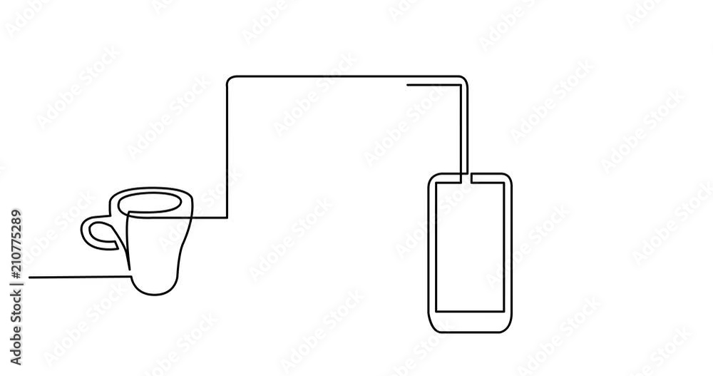 Wall mural animation of continuous line drawing of laptop computer mobile phone - Wall murals Wall mural animation of continuous line drawing of laptop computer mobile phone - Wall murals