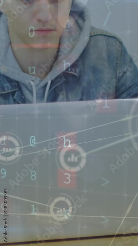 The watermark will not be included on Wall mural.: Animation of cyber security data processing against caucasian man using laptop at office