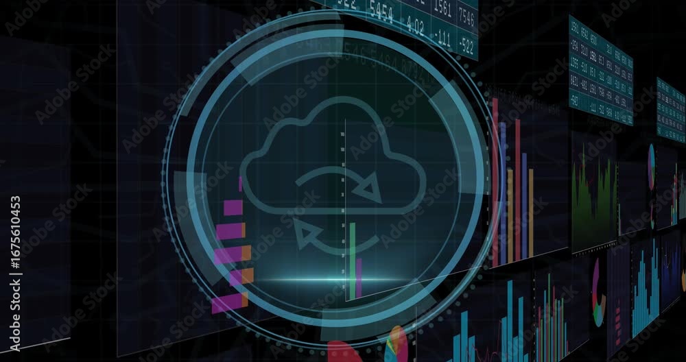 Wall mural animation of digital interface with data processing over black background - Wall murals Wall mural animation of digital interface with data processing over black background - Wall murals