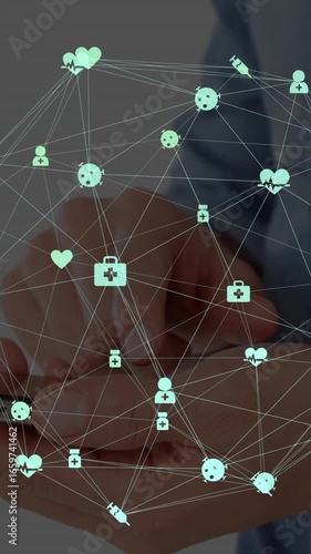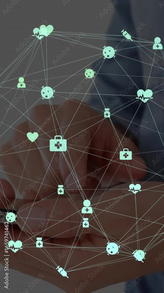 Wall mural animation of globe with network of connections with digital icons over woman using smartphone - Wall murals Wall mural animation of globe with network of connections with digital icons over woman using smartphone - Wall murals