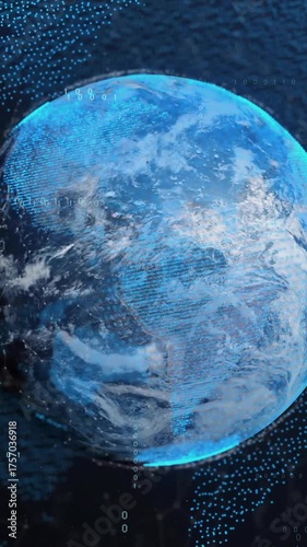 Wall mural animation of globes over data processing on black background