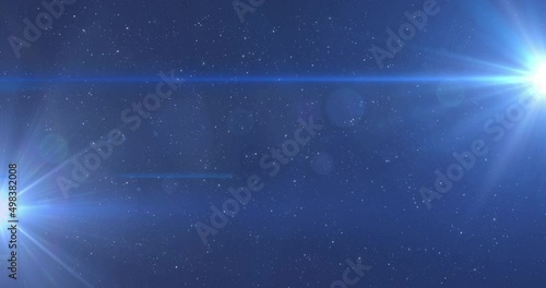 Wall mural : Animation of glowing blue lights moving over spots of light and stars in background