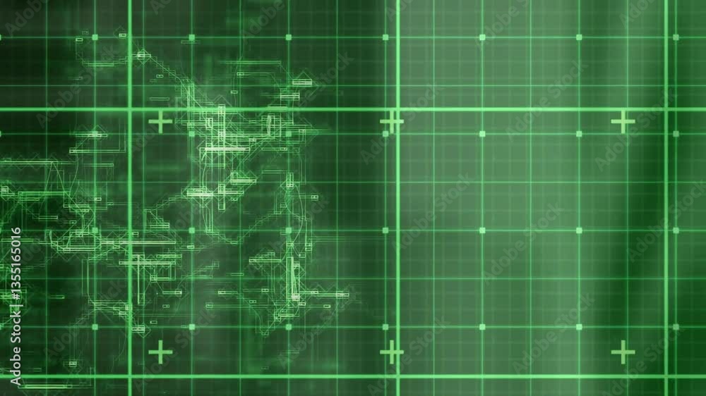 Animation of glowing green lines forming complex geometric patterns on digital gridWall mural