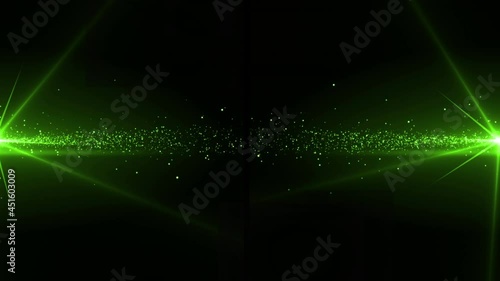 The watermark will not be included on Wall mural.: Animation of glowing green particles of light moving to centre from left and right, on black
