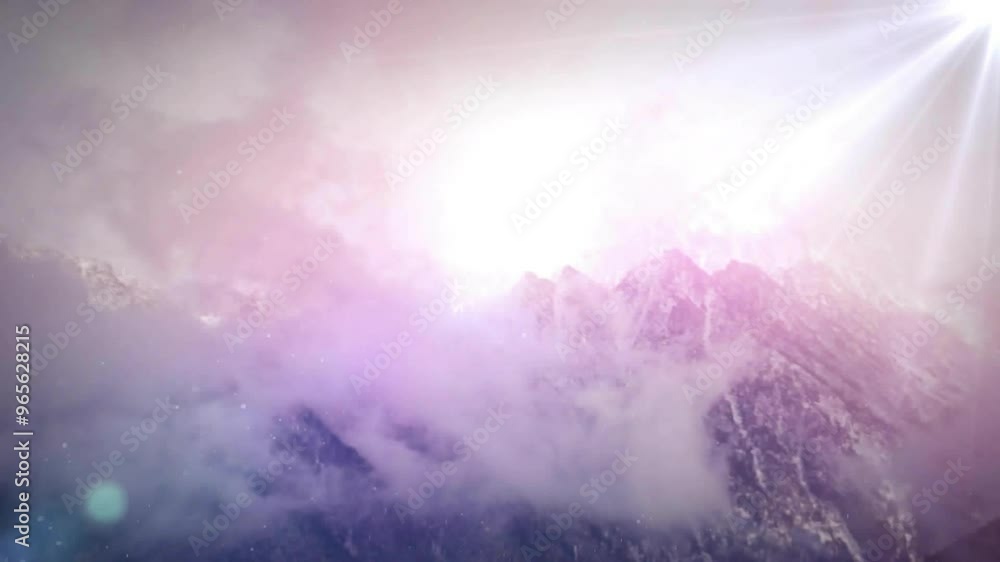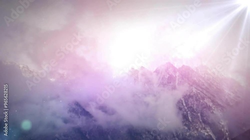 The watermark will not be included on Wall mural.: Animation of glowing lightss moving over clouds and mountains background