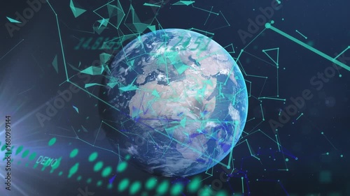 The watermark will not be included on Wall mural.: Animation of graphs and shapes over globe in space