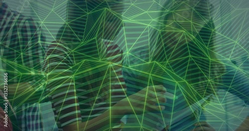 Wall mural : Animation of green geometric lines forming abstract pattern over blurred background