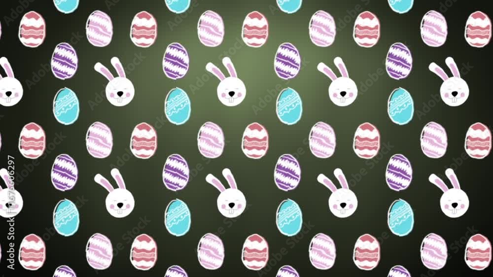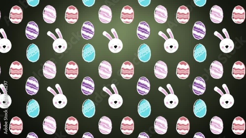 Wall mural : Animation of looping multicolored eggs and bunnies over gradient background