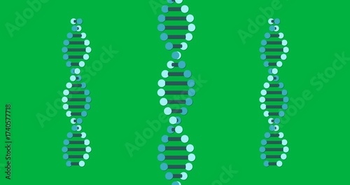 Wall mural animation of macro 3d blue dna strands spinning over transparent background