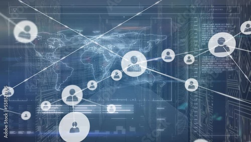 Wall mural animation of network of connections over data processing - Wall murals Wall mural animation of network of connections over data processing - Wall murals