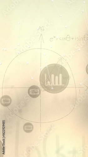 The watermark will not be included on Wall mural.: Animation of network of connections with icons over blurred background