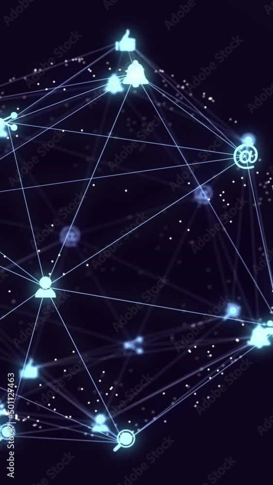 Wall mural animation of network of connections with icons over dark background - Wall murals Wall mural animation of network of connections with icons over dark background - Wall murals