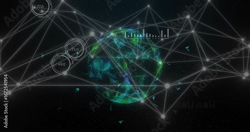 Wall mural animation of network of connections with spots over globe on dark background - Wall murals Wall mural animation of network of connections with spots over globe on dark background - Wall murals