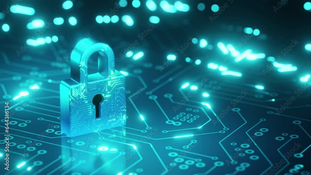 Wall mural animation of online security padlock, data processing over computer circuit board. global online sec - Wall murals Wall mural animation of online security padlock, data processing over computer circuit board. global online sec - Wall murals