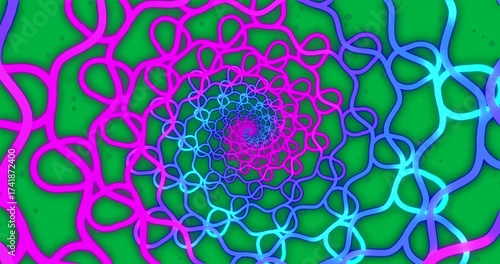 Wall mural animation of purple and blue neon pattern moving in hypnotic motion on transparent background