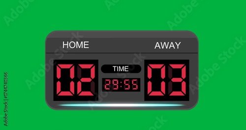 Wall mural animation of scoreboard displaying red digital numbers on black background