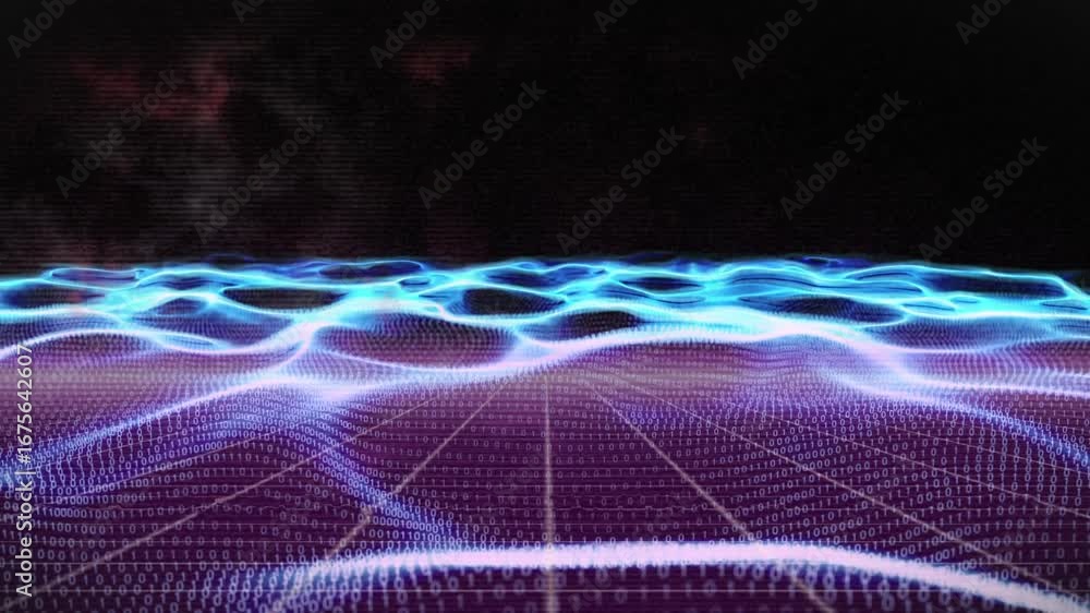 Wall mural : Animation of sea waves over grid pattern against galaxy in background
