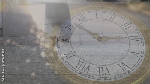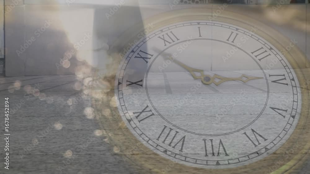 Wall mural : Animation of solar system planets and space over field and clock ticking