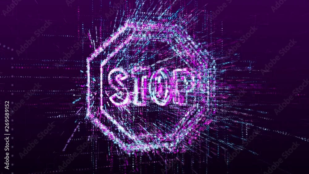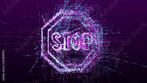Wall mural animation of the stop sign. consists of a stream of numbers and symbols in digital space. abstract i