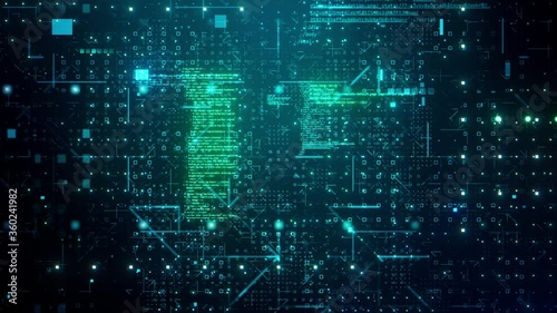 The watermark will not be included on Wall mural.: Animation random colored computer code strings and digital elements flying toward the viewer - 3d ren