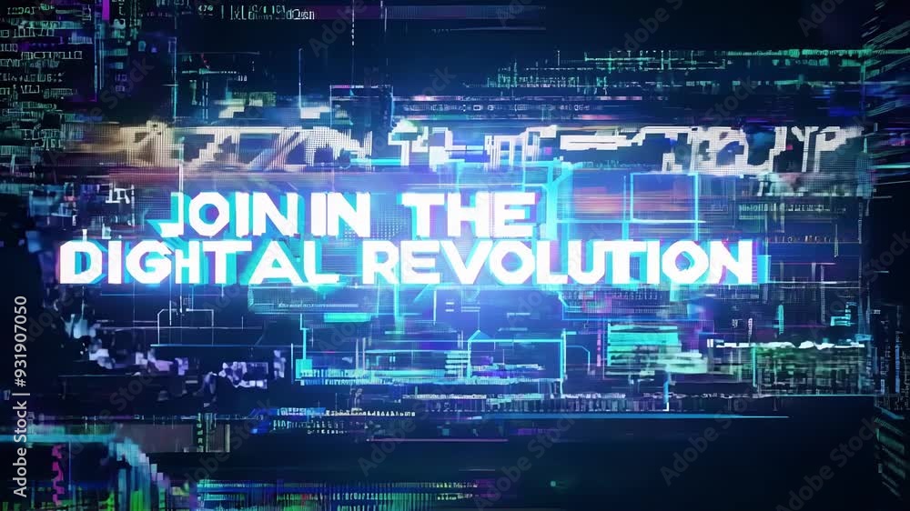 Wall mural animation showcases the phrase join in the digital revolution emerging on a screen, enhanced by a ca - Wall murals Wall mural animation showcases the phrase join in the digital revolution emerging on a screen, enhanced by a ca - Wall murals