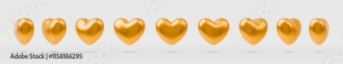 Wall mural : Animation sprite sheet of gold heart sequence rotation - gold glossy 3d heart balloon in different an