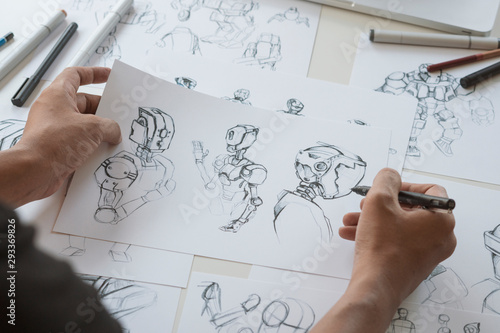 Wall mural : Animator designer development designing drawing sketching development creating graphic pose characte