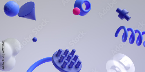 Wall mural announcement 3d banner template, communication concept. 3d rendering flying abstract geometric shape