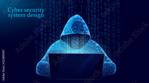 Wall mural anonymous hacker at the laptop computer internet security. cyber attack business concept low poly. s - Wall murals Wall mural anonymous hacker at the laptop computer internet security. cyber attack business concept low poly. s - Wall murals