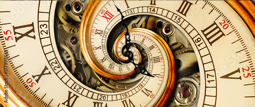 The watermark will not be included on Wall mural.: Antique old clock abstract fractal spiral - watch classic clock mechanism unusual abstract texture fr