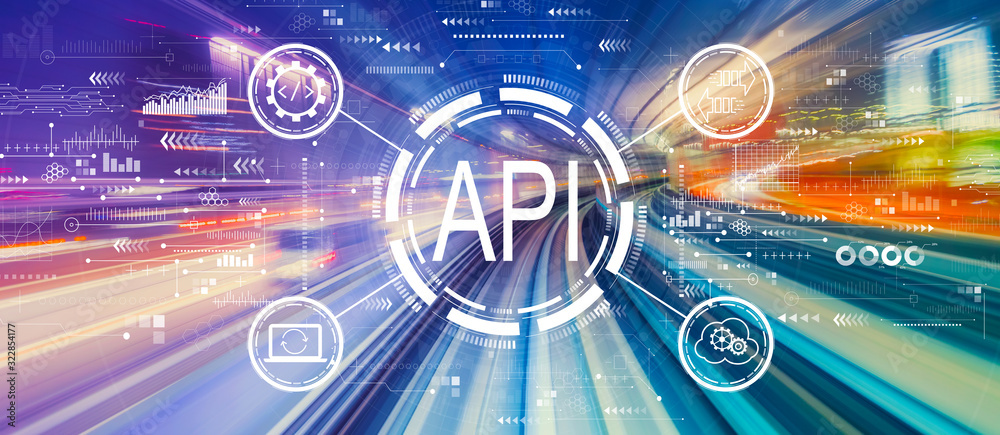 Wall mural api - application programming interface concept api concept with abstract high speed technology pov  - Wall murals Wall mural api - application programming interface concept api concept with abstract high speed technology pov - Wall murals