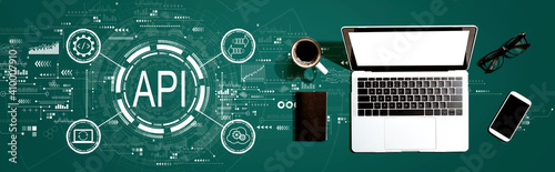 Wall mural api - application programming interface concept with a laptop computer on a desk - Wall murals Wall mural api - application programming interface concept with a laptop computer on a desk - Wall murals