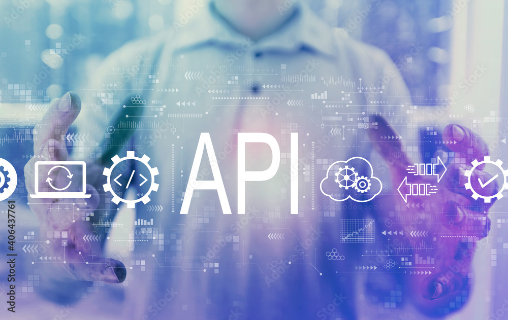 Wall mural api - application programming interface concept with young man holding his hands - Wall murals Wall mural api - application programming interface concept with young man holding his hands - Wall murals