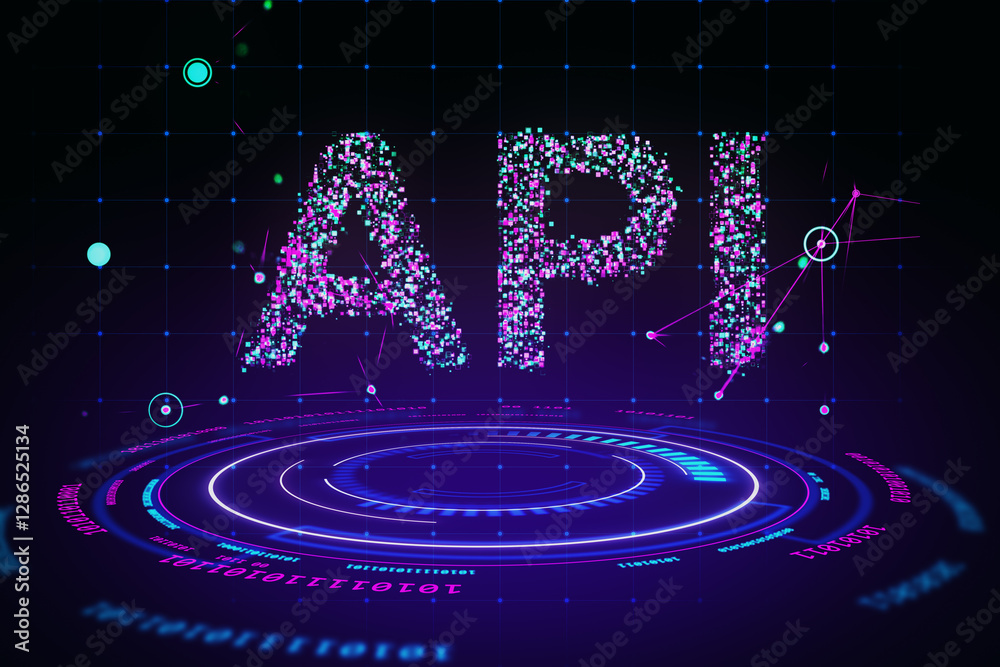 The watermark will not be included on Wall mural.: Api digital concept with glowing holographic elements - 3d rendering