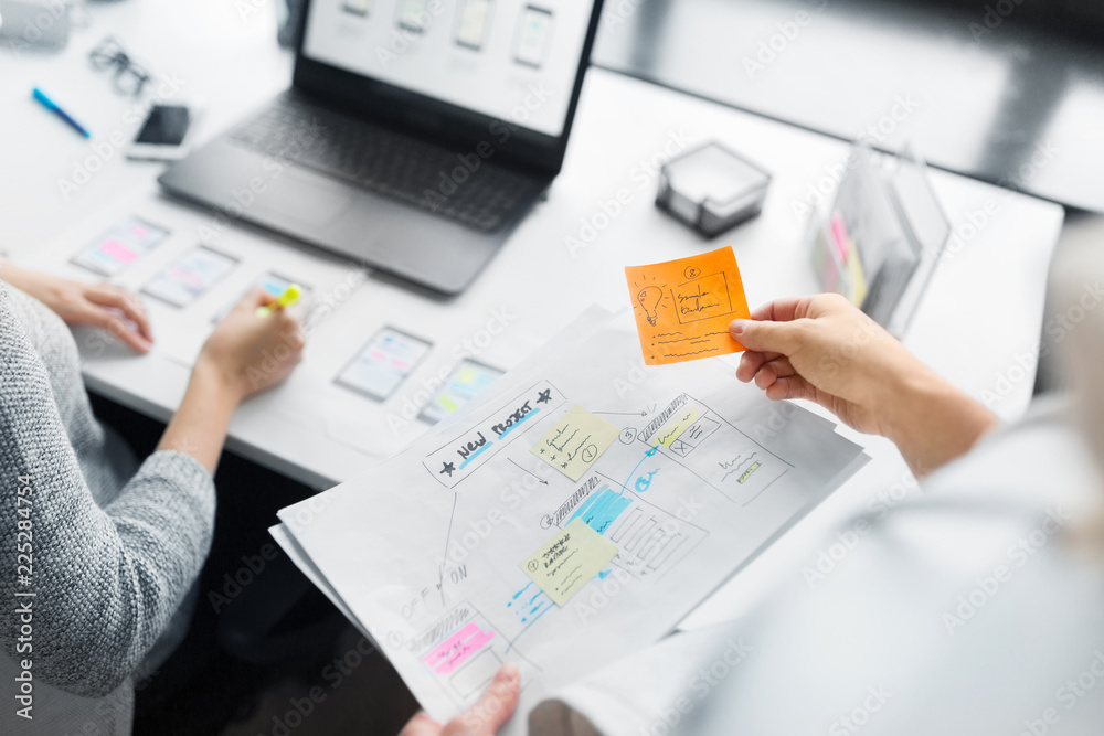 Wall mural app design, technology and business concept - web designers working on user interface project and cr - Wall murals Wall mural app design, technology and business concept - web designers working on user interface project and cr - Wall murals